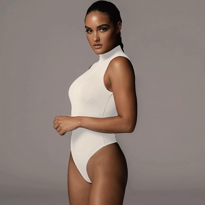 • Style Features: Wearing half turtleneck sleeveless bodysuit is a great way to flatter your neck, keep cool, and creates a vintage-inspired and effortlessly chic look. The bodysuit with sexy thong design perfectly accentuates your unique butt curves.