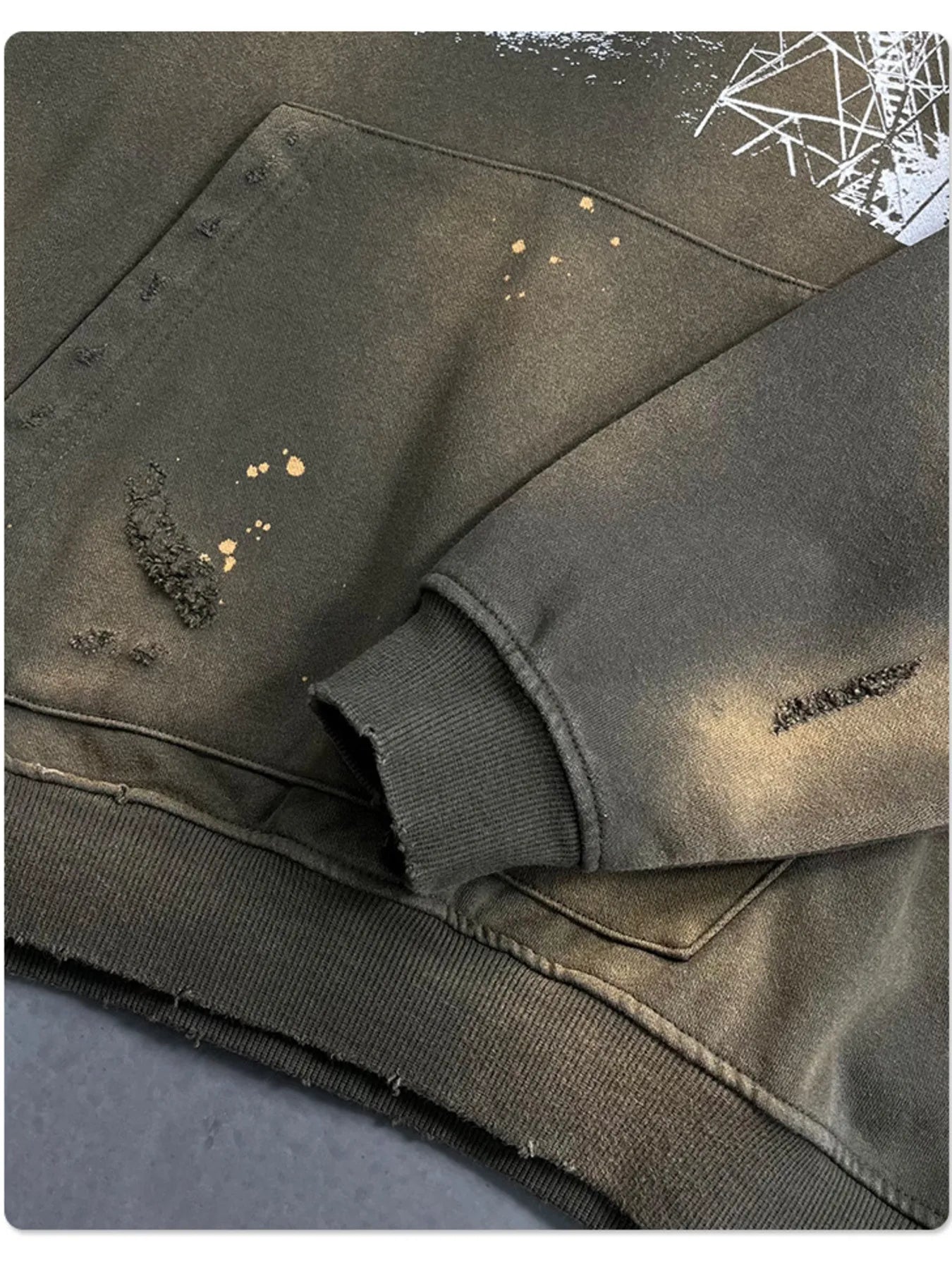 • Features:Oversized,Distressed,Drawstring,Pocketed