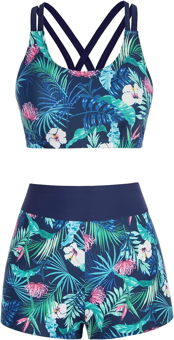 • 【FEATRUES】: Tankini top + bikini top + boy shorts. Trendy 3 piece bathing suit offers you a playful range of combination, such as bikini top matches with bottom fits younger women well. Three piece modest swimsuit fits conservative women.