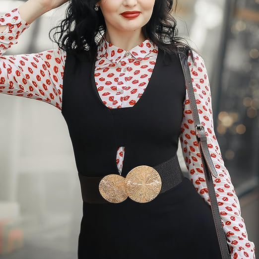 • ⭐ Perfect Gift: This elastic belt women is a thoughtful gift for your wife, mom, daughter, girlfriend, and other women for birthdays, graduations, weddings, thanksgiving, Christmas, and anniversaries. Comes with one elastic vintage wide waist belt with gold double round buckle.