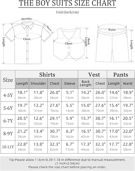 • This 3-piece boys shorts and t-shirt sets is made of high-quality cotton blend material. This includes a vest, shorts, short sleeved white shirt, and a detachable bow tie, which will make your boy stand out in the crowd.